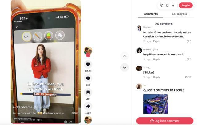 一条对于Loopit的TikTok视频播放量近千万,11 万点赞、数百条留言,指摘区不需要申饬、专科才气,方便创作是高频词| 图片着手:TikTok