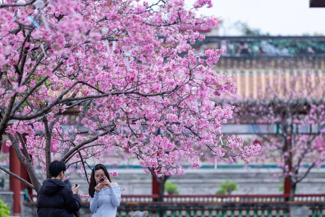 数百株樱花竞相怒放,粉白相间的花簇与园内亭台楼阁、曲径回廊兴趣横生,组成一幅古典园林与当然春色合资的画卷,诱骗无数市民旅客及影相怜爱者前来赏花打卡。