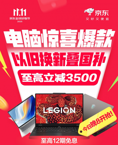 10月9日晚8点,京东11.11正式开启,现货开卖无须等。为让更多消耗者随意换新电脑,京东11.11推出万台电脑每晚8点5折秒杀、爆款电脑以旧换新叠国补至高立减3500元的福利,还可享至高12期免息,让消耗者焕新电脑、平板、DIY、学习机、电子评释注解、机器东说念主等好物合算又定心。岂论您是硬核游戏玩家、高效学习东说念主士,依然前沿科技心疼者,都能抢先在京东11.11找到中意之选。来京东11.11选购电脑居品,专科严选,又好又低廉!